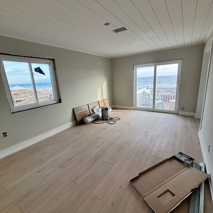This Ocean Isle Beach condo remodel features all new flooring, updated wall finishes, and a reimagined living space that maximizes natural light and enhances ocean views. By opening up the main areas and selecting durable, low-maintenance materials, we created a space that is both visually striking and built to withstand heavy seasonal use.